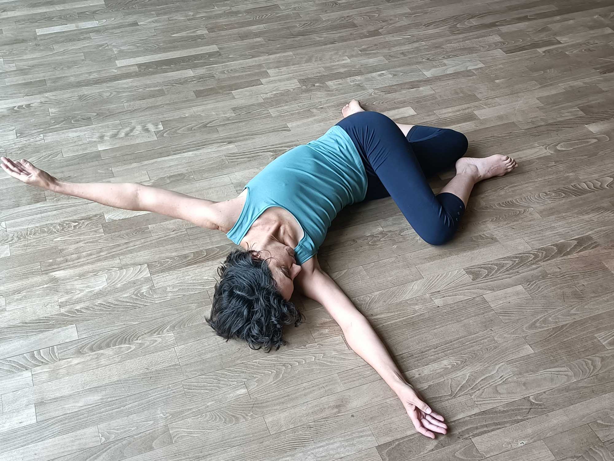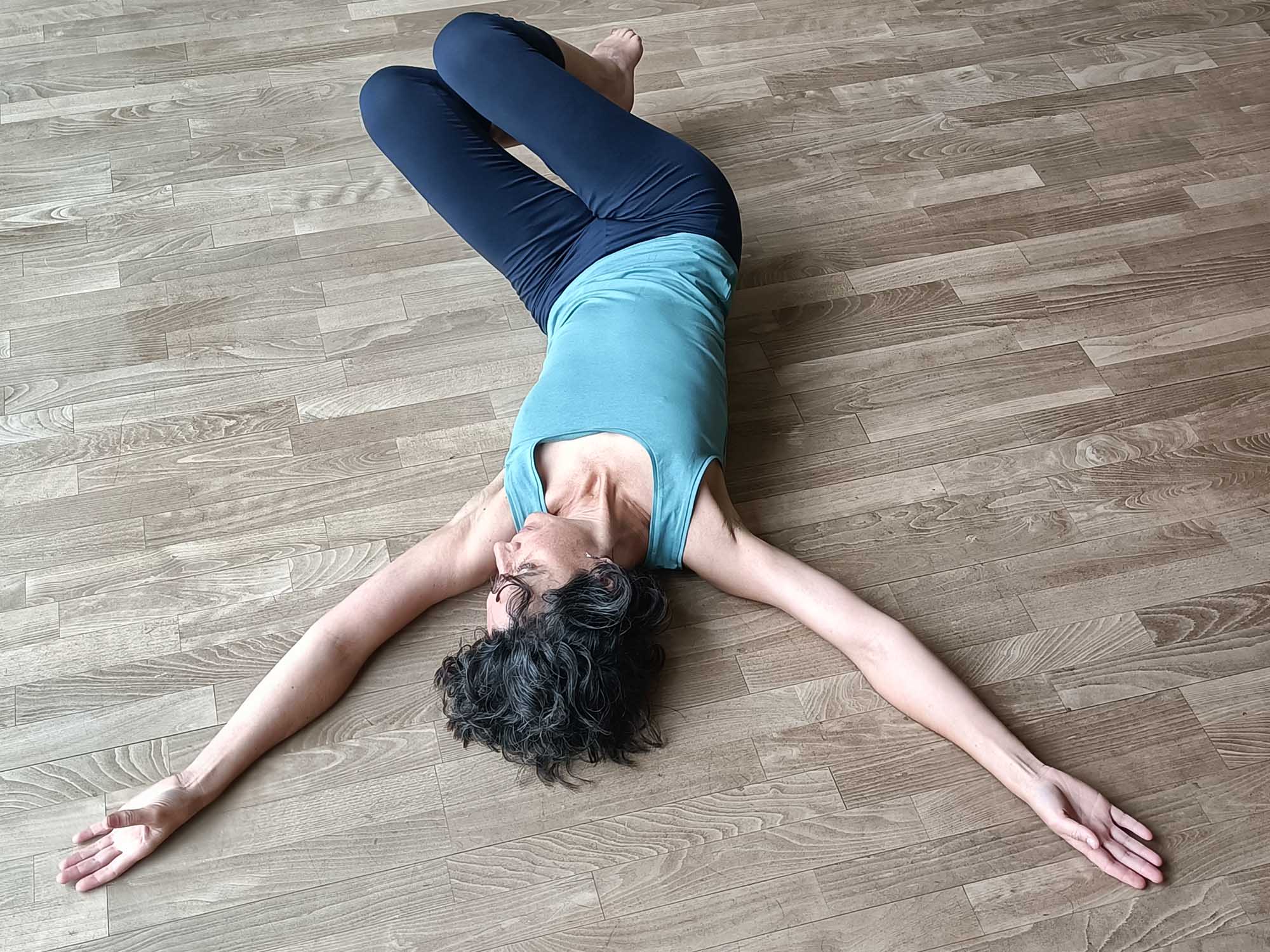 - Préparez un espace au sol suffisant pour vous allonger confortablement, bras ouverts en croix, avec de la marge autour de vous.